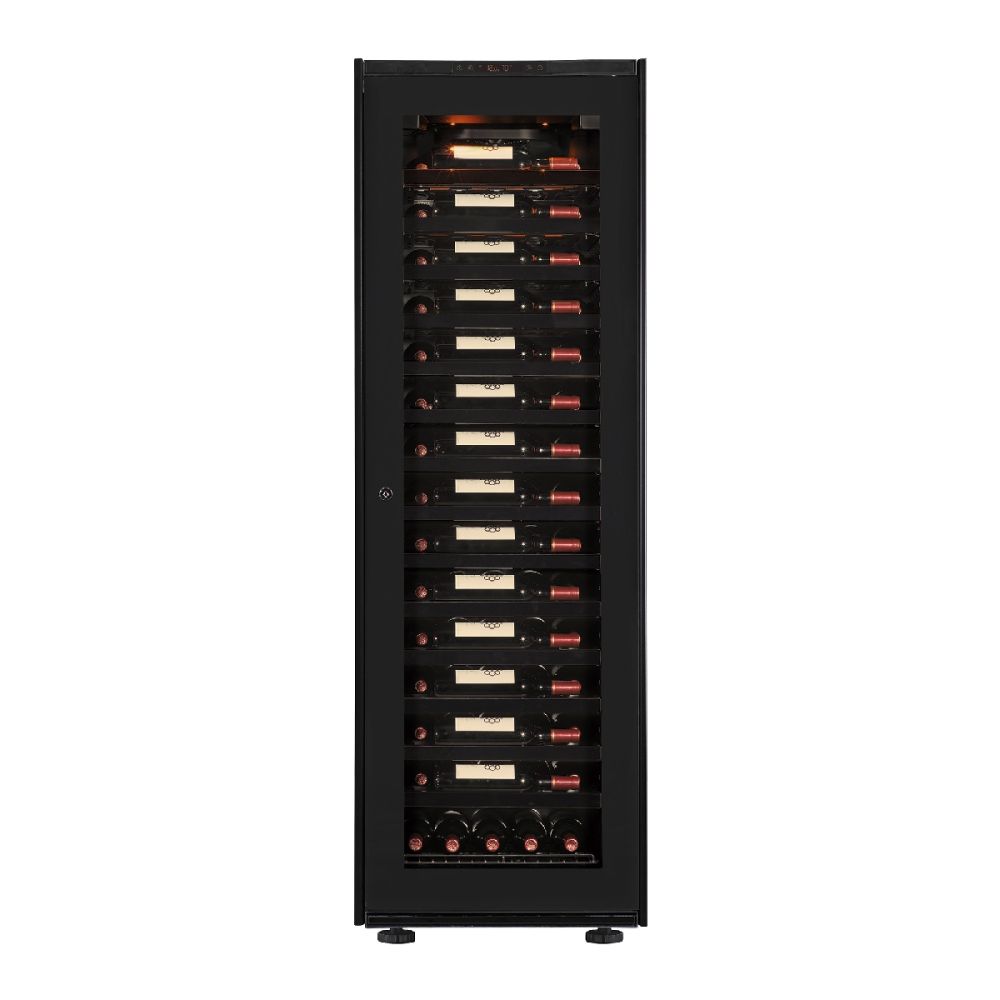 That means: controlled temperature, suitable humidity thanks the walls in embossed aluminium, constant ventilation, UV protection, extra protection from vibration owing to the actual design of the wine fridge.
